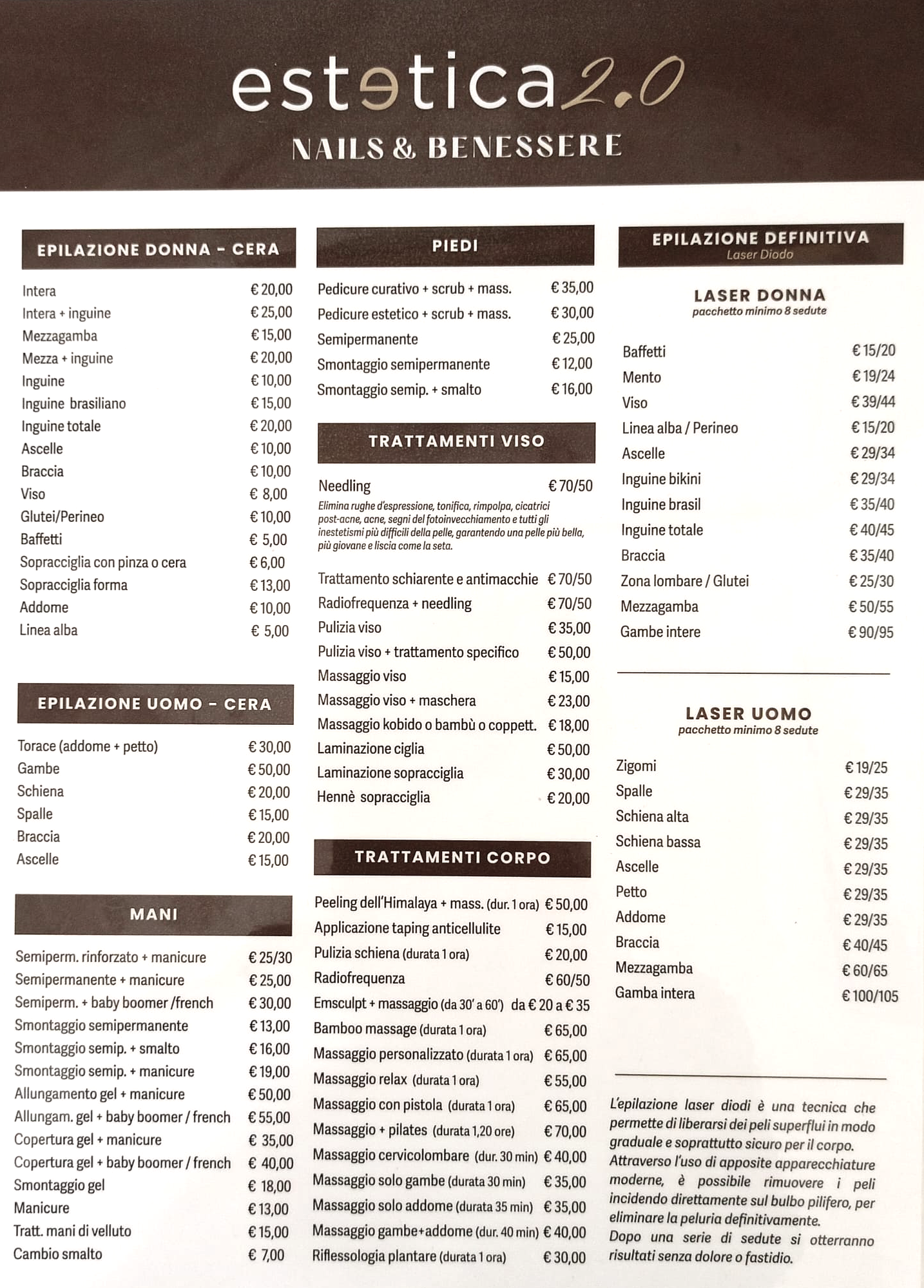 EsteticA 2.0 ha come obiettivo quello di permettere ai suoi clienti di sentirsi belli sempre e che trovino un vero e proprio punto di riferimento nei nostri dipendenti e nei nostri specialisti.